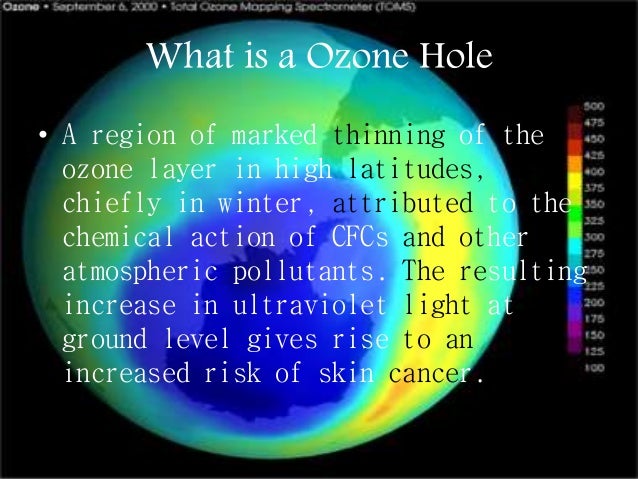 The main molecules that are destroying the ozone layer are called chlorofluorocarbons or CFCs. For over 40 years it has been known that the chlorine in CFCs breaks down the ozone layer at a rate of 1000001. NASA projections of stratospheric ozone concentrations if chlorofluorocarbons had not been banned.