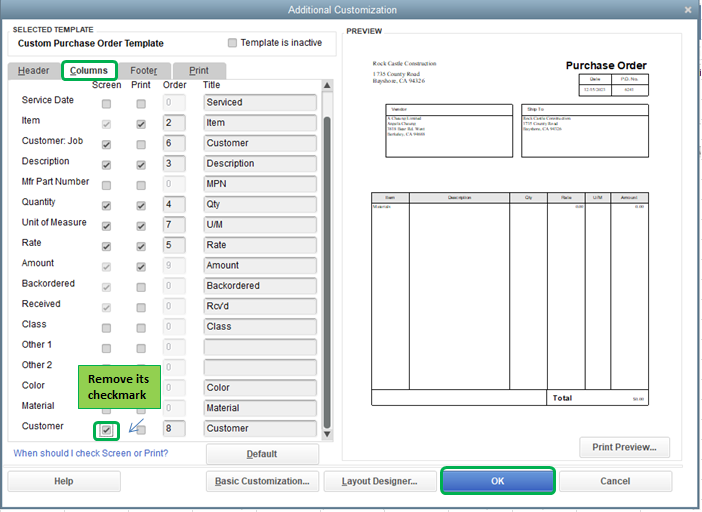 Customer Column On Purchase Order